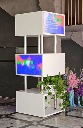"Weather Woven Livingโ ์ํ์ ์ ์๊ณต๊ฐ ๊ทผ์ฒ ์ธ๋ถ ๊ณต๊ฐ์ ์์นํ ๊ฐ์ธ๋ ์จ ๊ด์ธก์๋ฅผ ํตํด ๋ ์จ ๋ฐ ํ๊ฒฝ ๋ฐ์ดํฐ๋ฅผ ์์งํ๋ฉฐ, ์ด ๋ฐ์ดํฐ๋ฅผ ํ ๋๋ก ์๊ณผ ํํ๊ฐ ํ๊ฒฝ์ ์์์ ๋ฐ์ํ๋ Data Generative moving images ๋ฐ light๊ณผ ํจ๊ป ์กฐ๋ช